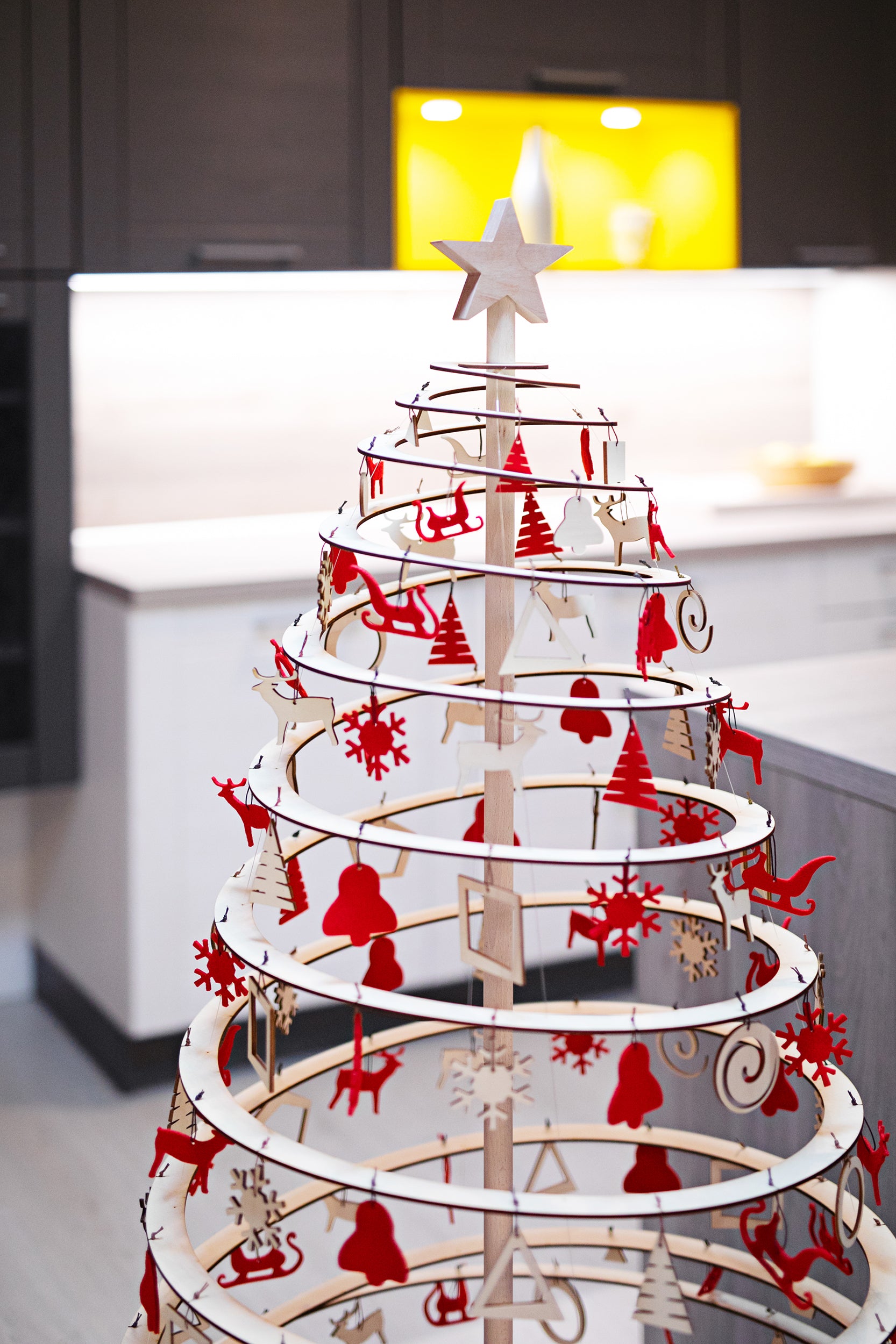 El elemento más mágico de cada árbol de Navidad es una estrella. La estrella cuidadosamente elaborada para la copa del árbol Spira complementa el árbol de madera con un estilo minimalista pero cálido. El adorno de estrella está hecho de madera de haya.