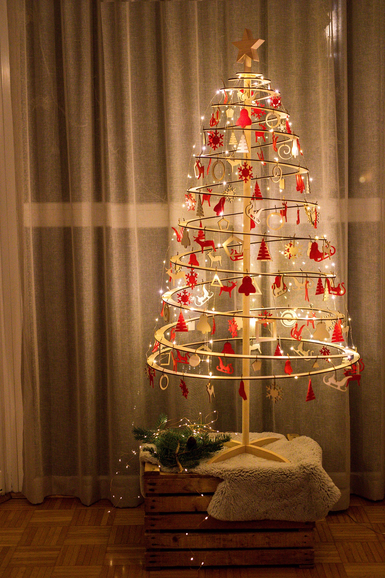 El árbol de Navidad ecológico de madera Spira está hecho para todos los que aprecian la calidez de la naturaleza y su aspecto elegante. El diseño innovador garantiza que puedas montarlo en poco tiempo y guardarlo fácilmente en una pequeña caja después de su uso.
