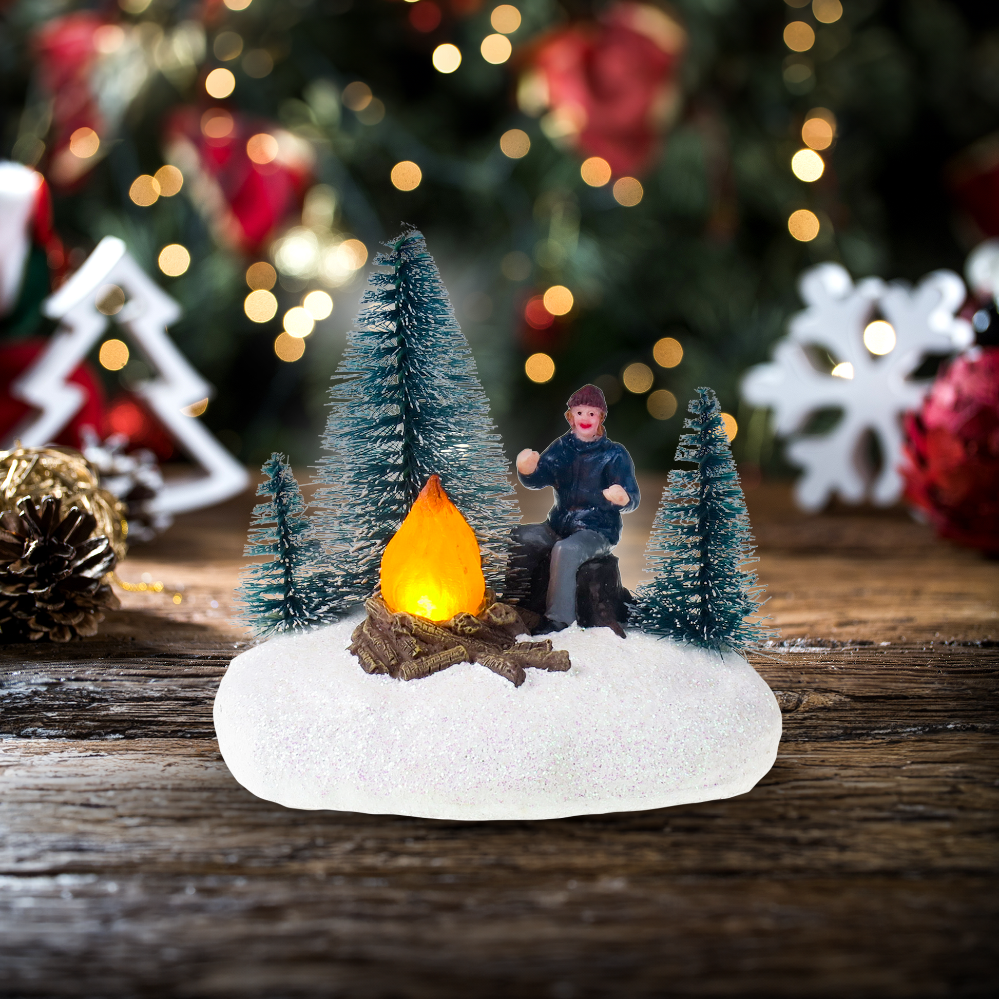 Hombre con hoguera y árboles - Christmas Village extra
