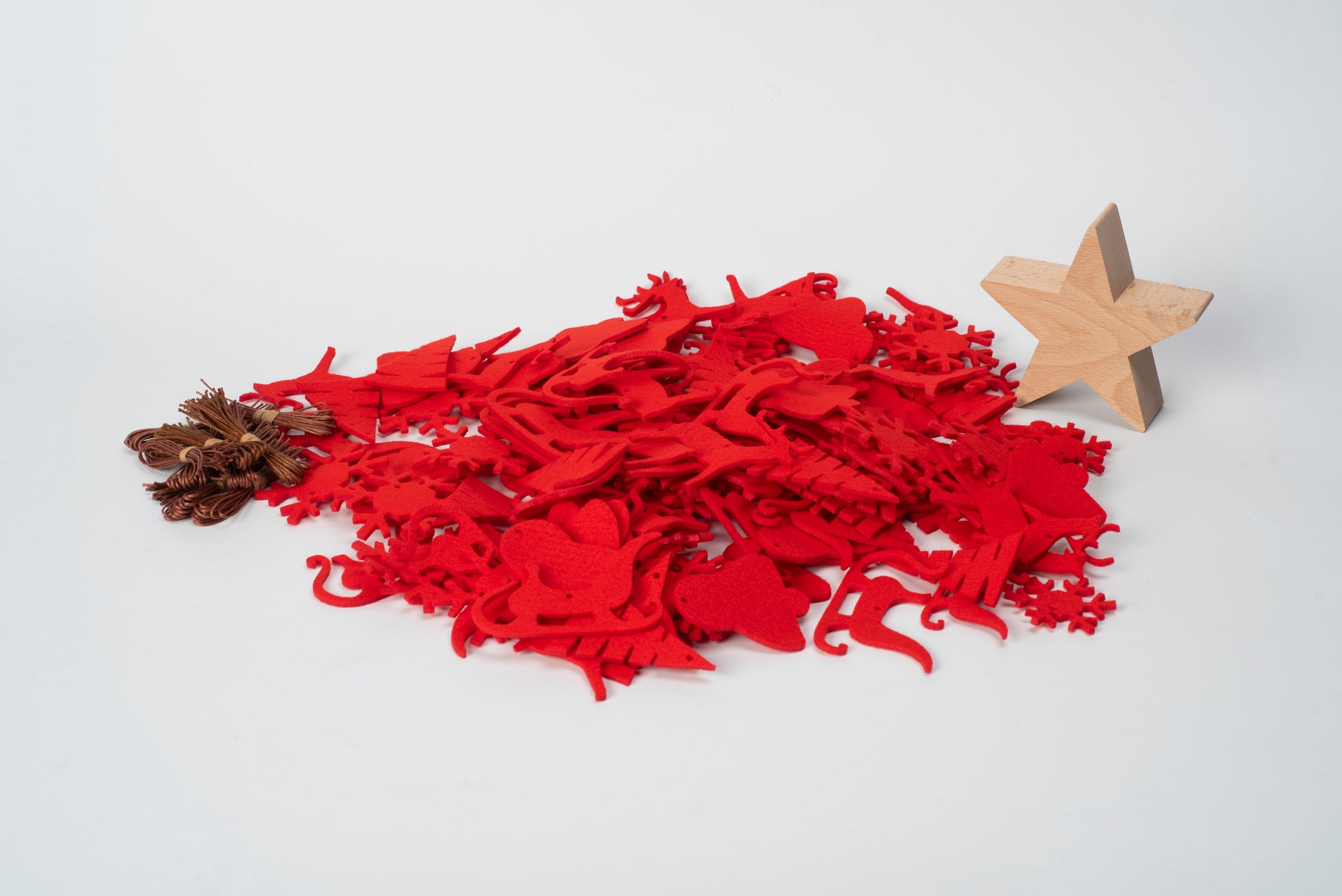 El set contiene 139 adornos de fieltro y una estrella de madera para la punta del árbol. Incluye cordones para colgar. Estas adorables decoraciones crearán el ambiente festivo perfecto en casa. Solo falta la cena de Navidad y a tus seres queridos.