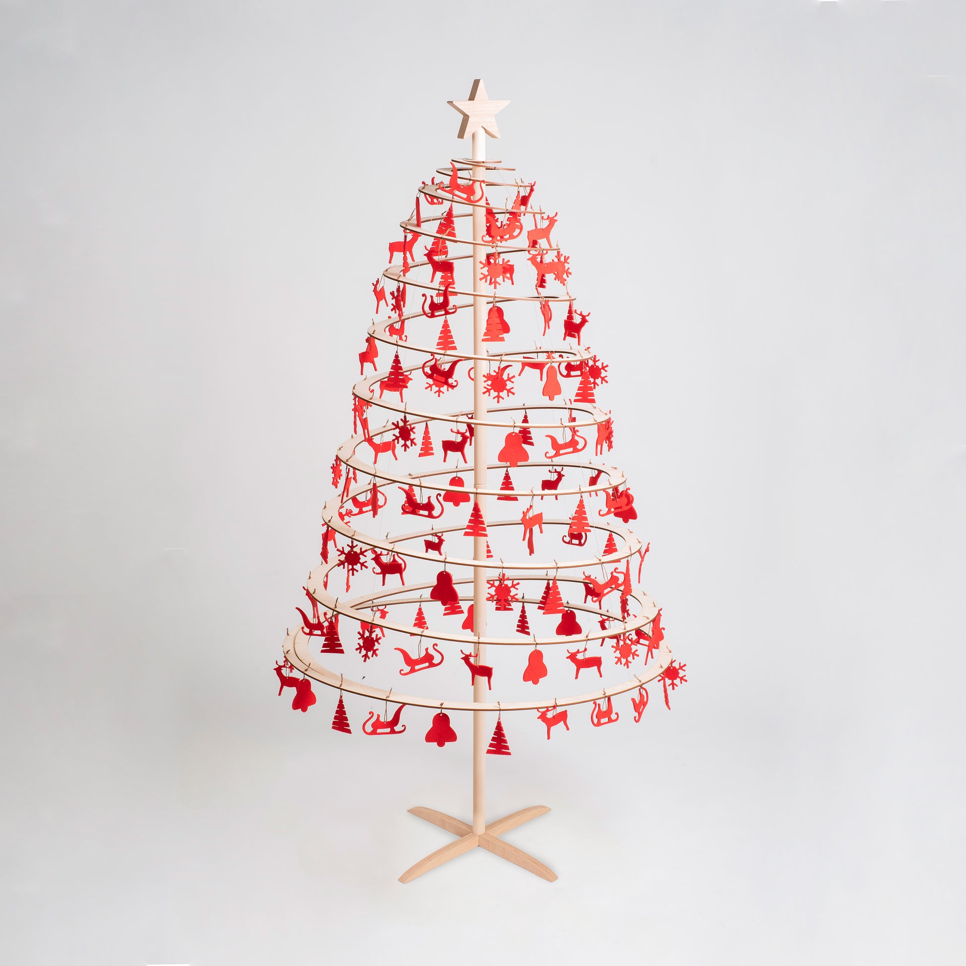 Una mezcla de adornos de fieltro en 5 formas populares con temática navideña para su árbol Spira Large.