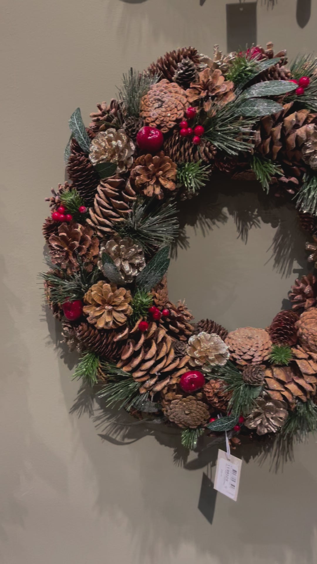 1. **Natural Beauty**: The wreath features an exquisite arrangement of realistic pinecones and vibrant red berries, bringing the beauty of nature indoors.
