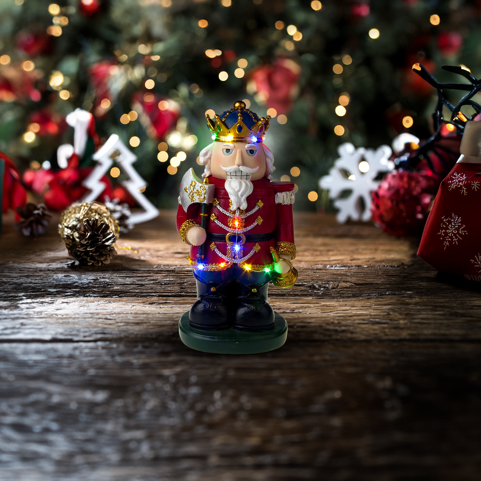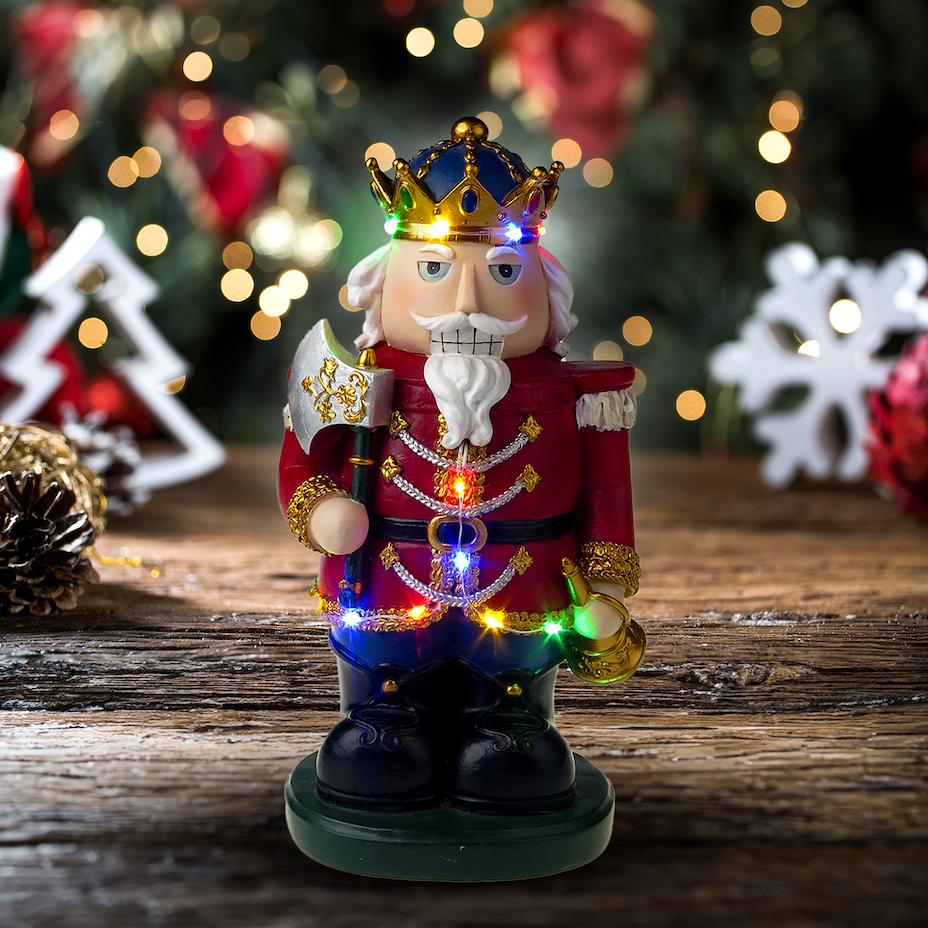 Crafted with attention to detail, this Nutcracker features intricate designs and vibrant LED lights, illuminating your space with a warm and festive glow. Simply insert 3 AA batteries (not included) to bring this delightful decoration to life.