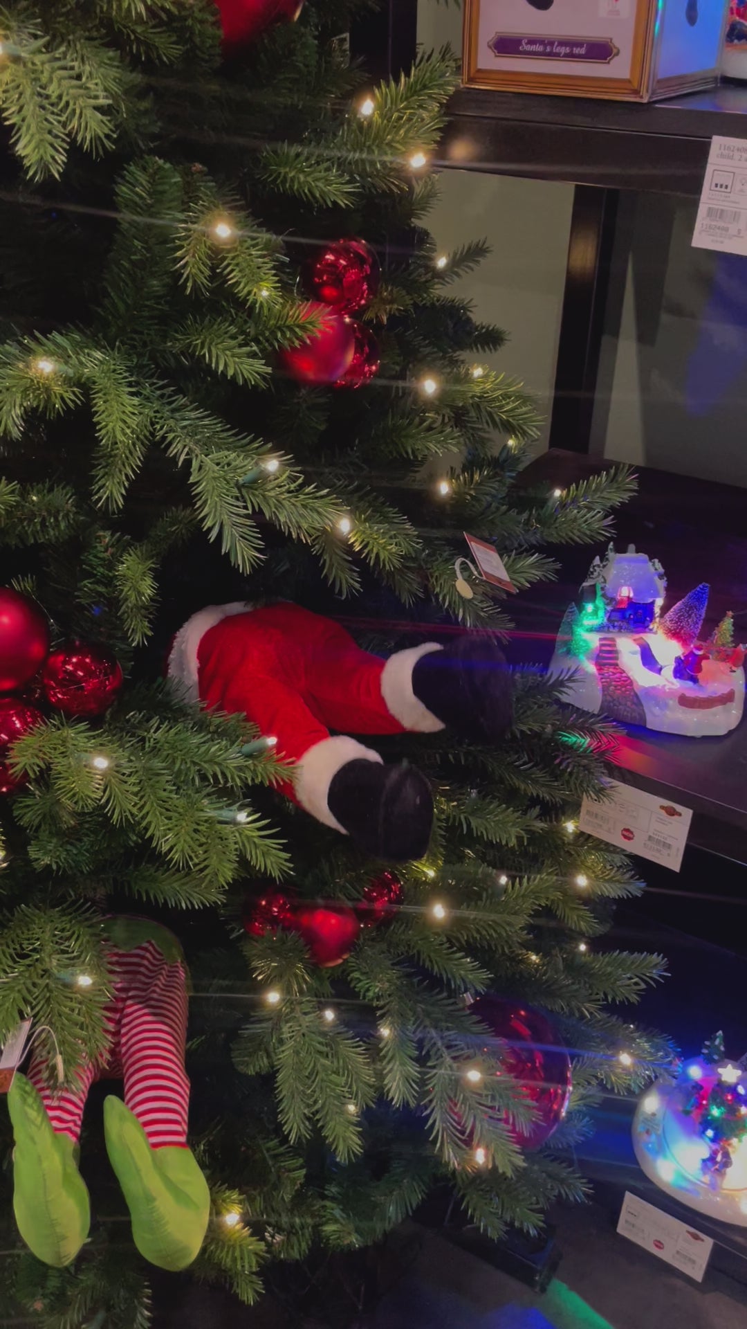 Add a touch of festive hilarity to your holiday décor with our Santa Tree Kicker! This amusing Christmas tree accessory gives the illusion that Santa Claus has taken a tumble into the tree, with just his legs, clad in red and white pantyhose, visible and humorously kicking as he tries to get out.